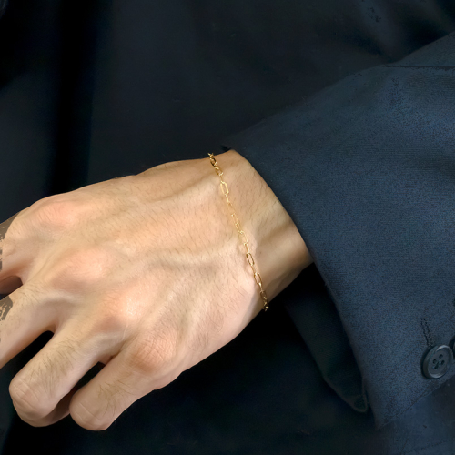 地金の素材感とスタイリッシュに見せるサイズ感で、ワンランク上のチェーンブレスレットです。