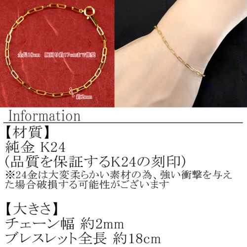 純金 24金 ブレスレット クリップチェーン 全長18cm 管理番号230706ns101k24b-18 SWAA109