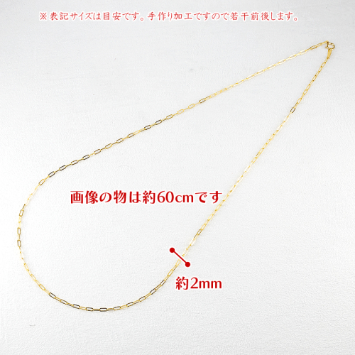 オシャレなクリップチェーンネックレス!ベーシックだけど今っぽい。 主張しすぎないすっきりとしたシンプルデザインで、1本でも重ね付けでも楽しめる。 1本持っているとコーディネートの幅が広がる、マストアイテムです。 通常ジュエリーに使用されるゴールドは割金の入ったK18やK10ですが、こちらはK24の純粋な金で作成されています。 黄金の発色が白んでおらずずっしりと重く、高級感のある質感をご堪能いただけます。