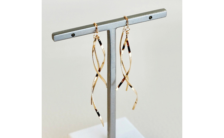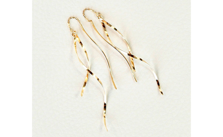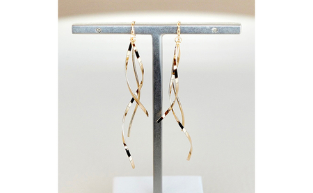 K18イエローゴールドの揺れるピアスです。 3本のスパイラルラインが軽やかに揺らめき、輝きを放ちます。 キャッチがないスタイルでポストのラインを耳に通し、チェーン部分でストップさせるので装着もとても簡単です。 長さもあり、顔まわりに彩りを与えてくれるでしょう。 ケースに入れ、リボンをかけてお届けいたします。