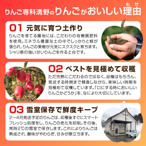 市場でも高級品種を中心としたリンゴ農家として人気のある「りんご専科 清野」が、丹精込めて育てたりんごをお楽しみ下さい。