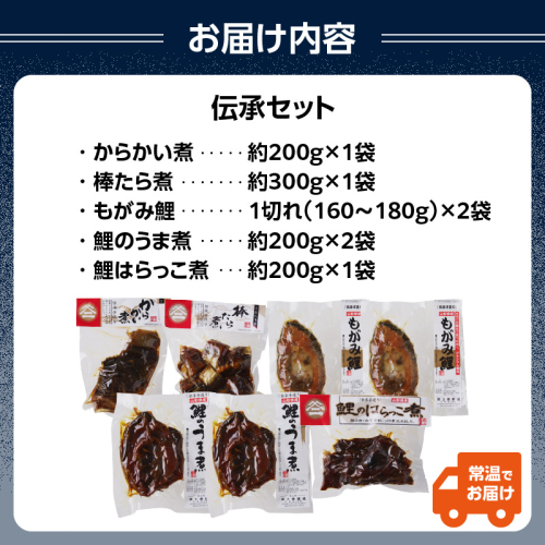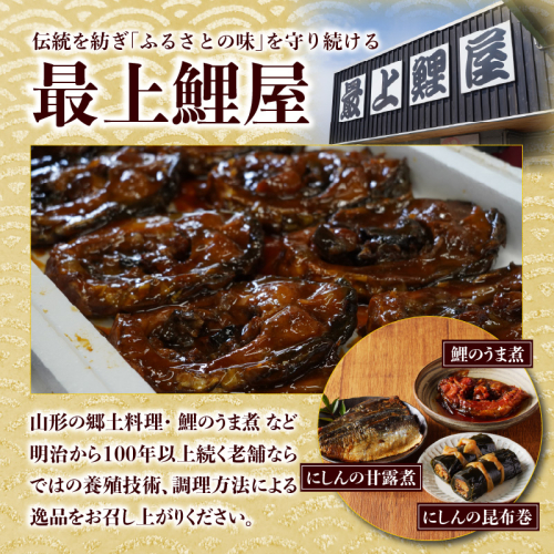 最上鯉屋 伝承セット(からかい煮200g×1、棒たら煮300g×1、もがみ鯉2切れ、鯉のうま煮2切れ、鯉はらっこ煮200g×1) 026-012