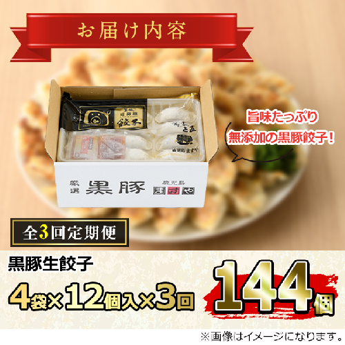- 【0365103b】<定期便・全3回>鹿児島黒豚生餃子48個セット(12個入×4パック×3回・計144個) 黒豚 豚肉 ぶた肉 餃子 ギョウザ ぎょうざ 惣菜【鹿児島ますや】