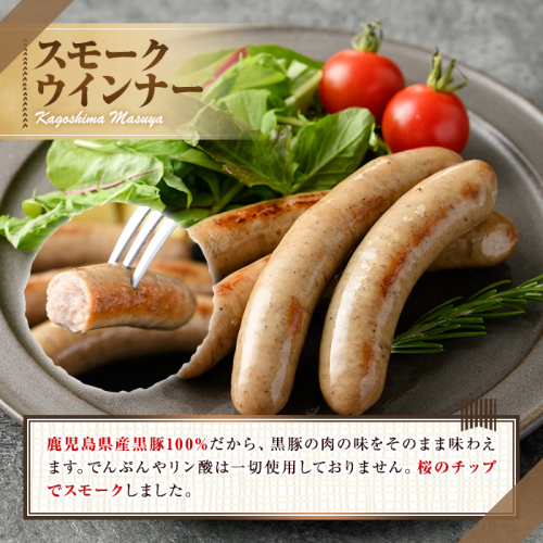 - 【0335104b】<定期便・全3回>鹿児島黒豚無添加ソーセージ(ウインナー・フランクフルト)の詰合せ(4種×3回・合計42本)国産 黒豚 豚肉 ぶた肉 ソーセージ フランクフルト スモーク【鹿児島ますや】