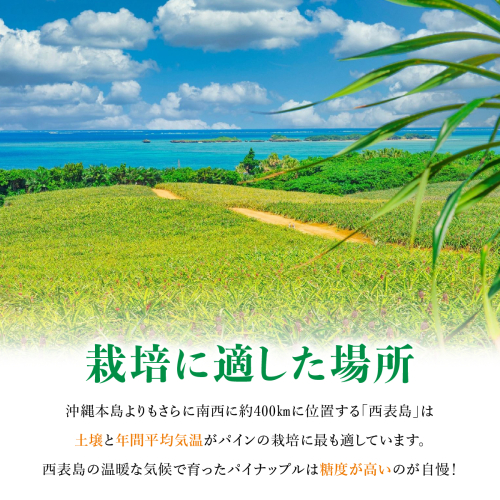 沖縄本島から南西約400km、沖縄県竹富町「西表島」は気温・土壌共にパイナップルの栽培に最適の地域です。その環境で育ったパイナップルが国内で販売されるのは1%以下。