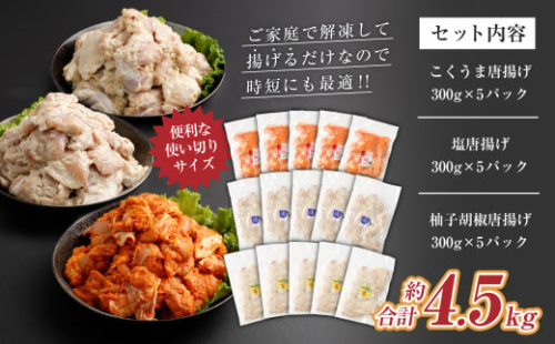 <3種の唐揚げバラエティセット 約4.5kg>2か月以内に順次出荷 こくうま唐揚げ 柚子胡椒 塩唐揚げ