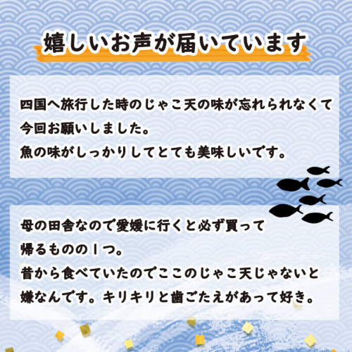 地元海域でとれた小魚を使用。 じゃこ天の本場、南予地方でも最もおいしいと評判のじゃこ天です。 (じゃこ天のおいしさを生かす為、小さく薄く作っています。)  油っぽさが無く大好評、小魚由来のじゃりじゃり感が人気!