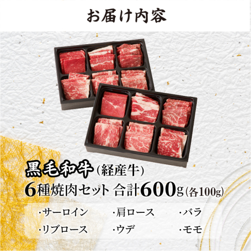 - 生産者応援≪訳あり≫黒毛和牛(経産牛)6種焼肉セット(合計600g) 肉 牛 牛肉 おかず 国産_T030-1203