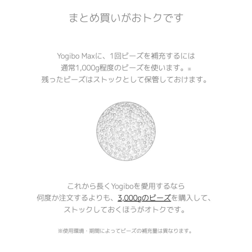 K2389 Yogibo / ヨギボー 補充ビーズ  3,000g 1294508 - 茨城県境町