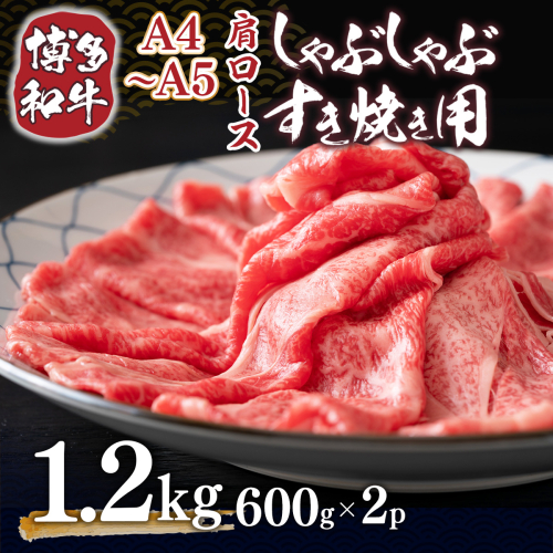 博多和牛 【A4~A5】 肩ロースしゃぶしゃぶ すき焼き 600g 2p 1.2kg [MEAT PLUS 福岡県 宇美町 um40azp010040] 牛肉 肉 和牛 牛肩ロース 牛しゃぶ 牛すき