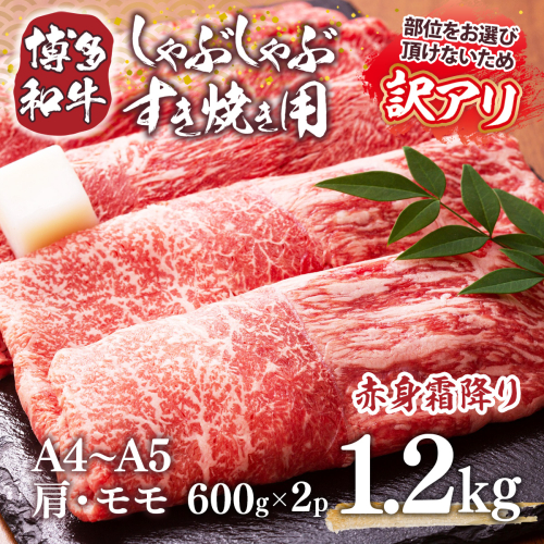 - 訳あり 【A4~A5】博多和牛 赤身霜降り しゃぶしゃぶ すき焼き 600g 2p 計1.2kg 肩 モモ [MEAT PLUS 福岡県 宇美町 um40azp010042] 牛肉 肉 和牛 肩肉 モモ肉 もも肉 牛しゃぶ 牛すき