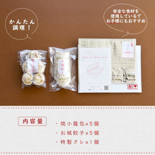 焼小籠包5個・お城餃子5個が入った本格てづくり点心(約2.5人前)セット。