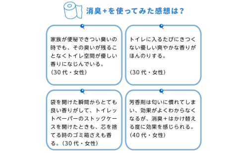 天然由来のW消臭成分(柿タンニン&茶カテキン)に加えて揮発性消臭成分を配合し、気になるニオイをしっかり消臭。防臭コート成分配合で、壁や床に付着した尿ハネから発生する尿臭をガード。爽やかさ・清潔感を感じられる、芯からしっかり香る「フレッシュクリアの香り」。パルプ100%