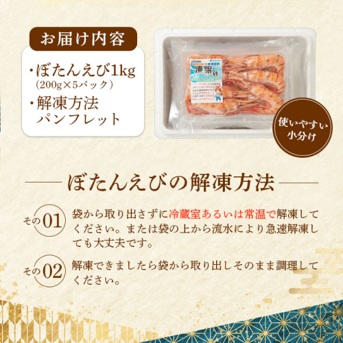 超速リキッド凍結でドリップゼロ!北海道羽幌産生鮮ぼたんえび 1kg(200g×5パック)【0311901】