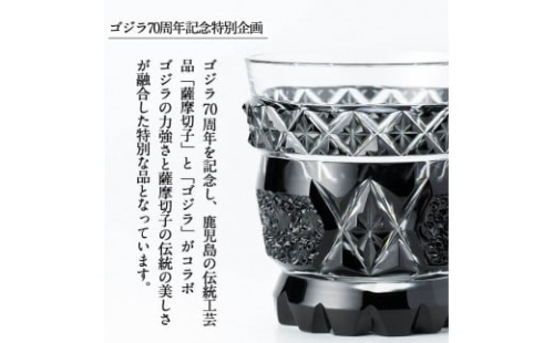 • K-182 ゴジラ70周年記念特別企画 ゴジラ仕様薩摩切子天開ロック「モノクロ」【美の匠ガラス工房弟子丸】霧島市 切子 ロックグラス グラス ガラス コップ ガラス細工 木箱入り