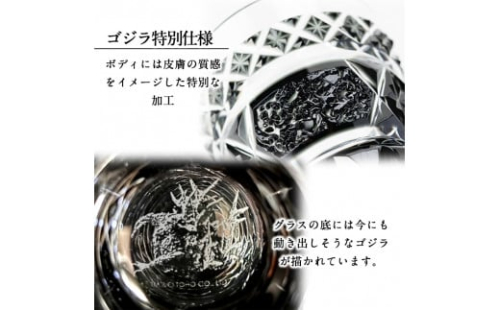ごつごつした皮膚感を表現した加工を施されたグラスの底にはゴジラの姿が描かれており、高い加工技術が表現されゴジラの力強さと薩摩切子の伝統の美しさが融合した特別な品となっています。