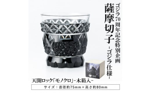 K-182 ゴジラ70周年記念特別企画 ゴジラ仕様薩摩切子天開ロック「モノクロ」【美の匠ガラス工房弟子丸】霧島市 切子 ロックグラス グラス ガラス コップ ガラス細工 木箱入り 1305845 - 鹿児島県霧島市