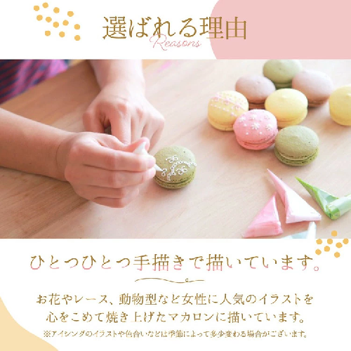 素材をこだわったマカロン生地に、店主がイラストを一つひとつ手書きで描いています。