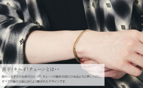 細い幅の喜平は着け心地も軽く、女性でもお楽しみいただけるチェーンです。