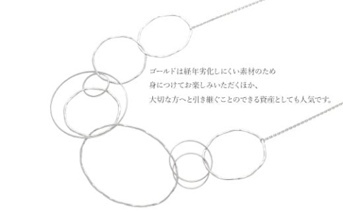 ゴールドは経年劣化しにくい素材のため、身につけてお楽しみいただくほか、大切な方へと引き継ぐことのできる資産としても人気です。