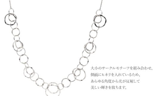 大小のサークルモチーフを組み合わせたデザインのネックレスです。