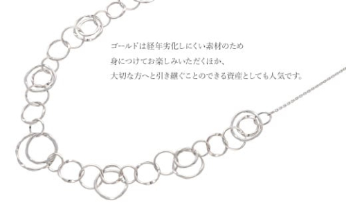 ゴールドは経年劣化しにくい素材のため、身につけてお楽しみいただくほか、大切な方へと引き継ぐことのできる資産としても人気です。