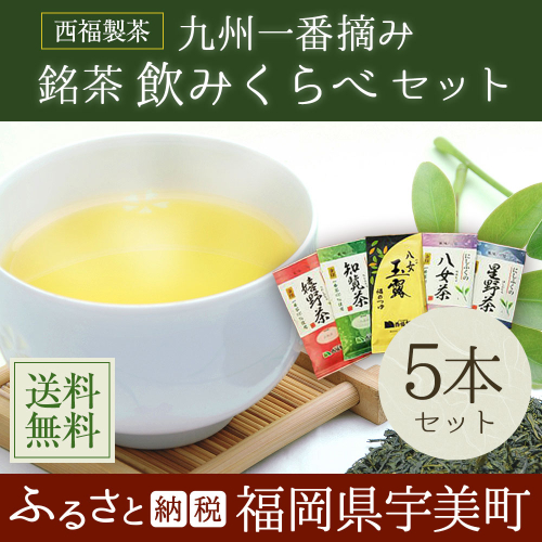 お茶 茶葉 九州一番摘み 銘茶 5種 飲み比べ セット [西福製茶 福岡県 宇美町 um40azo790000] 詰め合わせ 小分け 八女茶 星野茶 知覧茶 嬉野茶 八女玉露