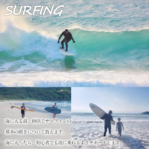 【1日5名まで!】ご希望のアクティビティを体験できます! happy smile farmで展開するマリンスポーツ・アウトドアアクティビティを体験できるチケットです。 当日の天候を加味しつつ、ご希望のアクティビティを体験できます。 私たちと一緒に阿久根・九州の大自然をアクティビティで満喫しましょう。 【体験できるアクティビティ】 ・サーフィン ・SUP(※コースによりオプション料が発生します) ・リバートレッキング(オプション料金:500円/名) ・登山 地産理由:阿久根市内の海・山林・河川等において提供される役務のため