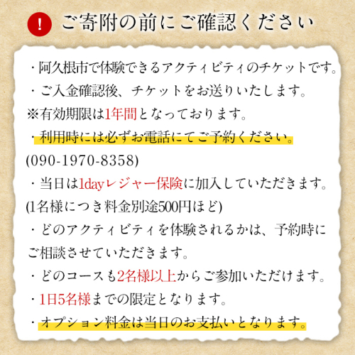 ・当日は1dayレジャー保険に加入していただきます。(1名様につき料金別途500円ほど)