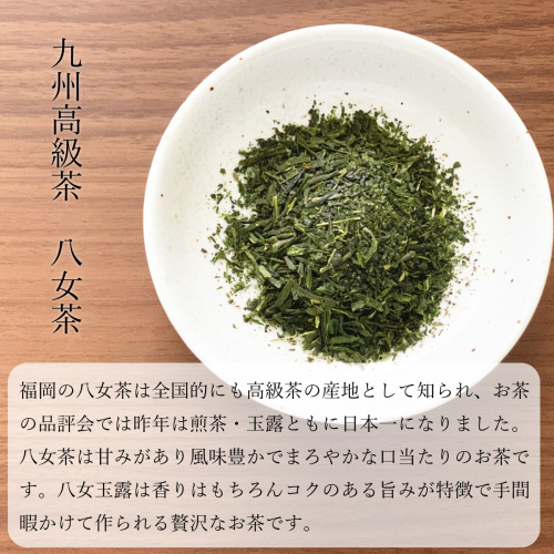 八女玉露は香りはもちろんコクのある旨みが特徴で手間暇かけて作られる贅沢なお茶です。