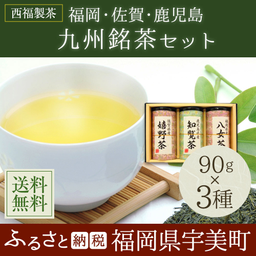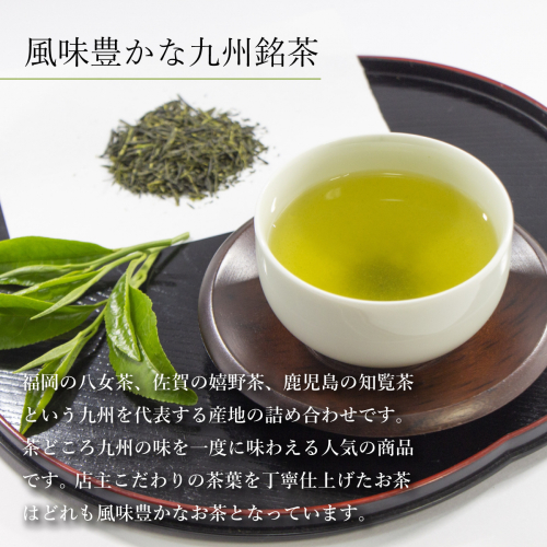福岡の八女茶、佐賀の嬉野茶、鹿児島の知覧茶という九州を代表する産地の詰め合わせです。
