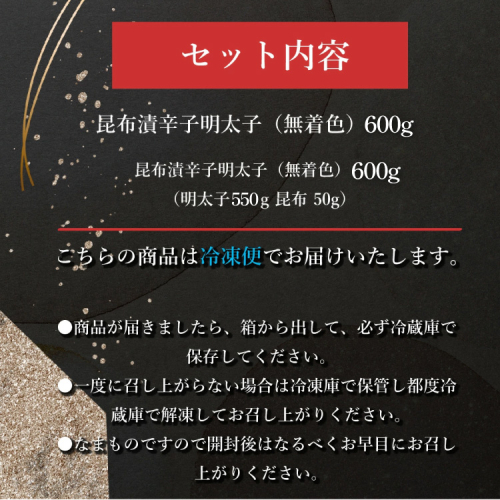 辛子明太子 無着色 昆布漬 600g [筑前福岡 福岡県 宇美町 um40azo710002] めんたいこ 明太子 福岡県産 冷凍