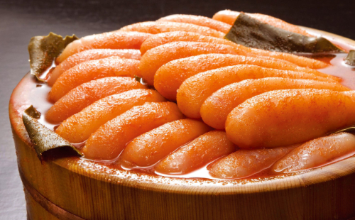 明太子と漬込んだ昆布を添えておりますので、絡めてお召し上がりになりますとまた一味違った風味が味わえます。