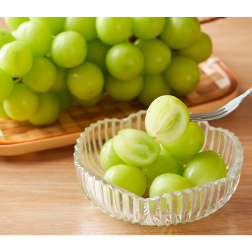 大粒のシャインマスカットは果肉がしまり、サクッとした歯ごたえで一粒ほおばると、あまーい果汁が口の中に広がります。