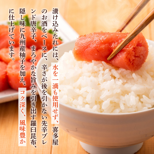 漬け込みたれには、水を一滴も使用せず、喜多屋のお酒をベースに、辛さが後を引かない先辛ブレンド唐辛子、まろやかな旨みを引き出す羅臼昆布、隠し味に九州産柚子を加え、コク深く、風味豊かに仕上げています。