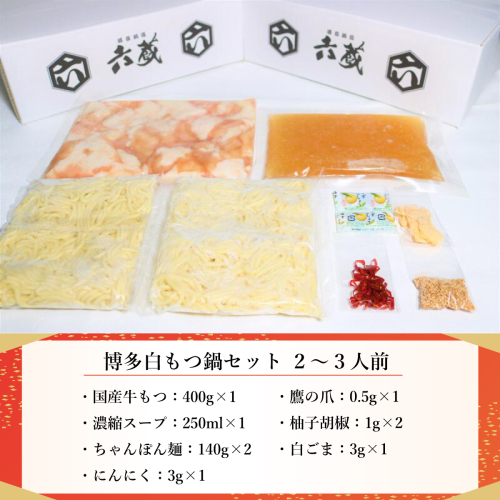 もつ鍋 六蔵 博多白もつ鍋 セット 2~3人前 国産牛もつ400g [OSADA 福岡県 宇美町 um40azo900001] モツ鍋 もつ鍋セット モツ鍋セット もつなべ 福岡 博多 鍋 白もつ 白モツ