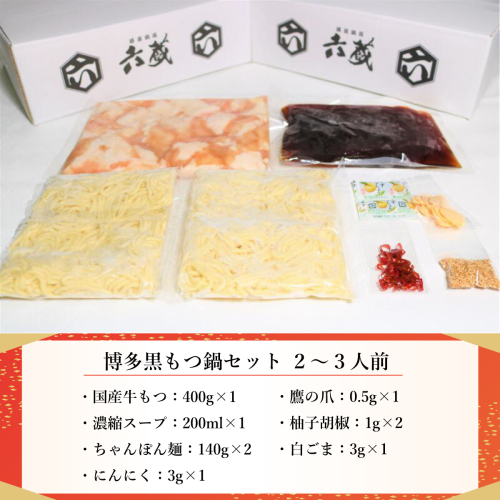 もつ鍋 六蔵 博多黒もつ鍋 セット 2~3人前 国産牛もつ400g [OSADA 福岡県 宇美町 um40azo900002] モツ鍋 もつ鍋セット モツ鍋セット もつなべ 福岡 博多 鍋 黒もつ 黒モツ