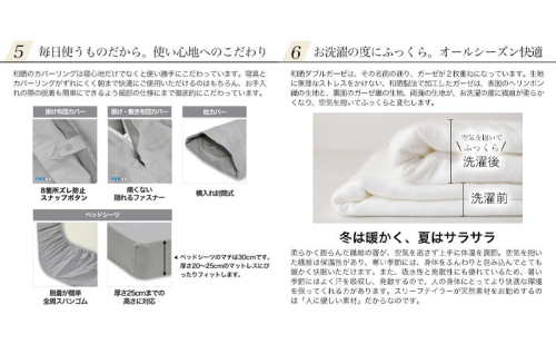 綿100% 和晒製法ダブルガーゼ ボックスシーツ ダブルサイズ グレージュ「和晒」