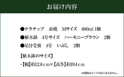 - 三河焼植木鉢ハーモニーブラウン【テラチップ赤焼】プランター お手軽植物栽培セット 園芸 粘土 鉢 植物 土 シルバー 赤 茶 H188-004
