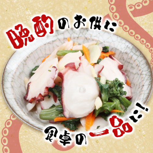 彩りがきれいでお酒のおつまみにもよく合います。ミズダコはその名のとおり、みずみずしい柔らかさをお楽しみください。