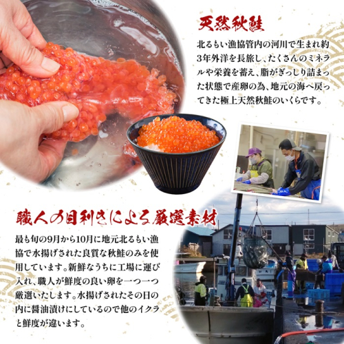 今年も北るもい漁協管内で獲れた鮮度抜群の秋鮭をその日のうちに加工し、いくら醤油漬けにしました。