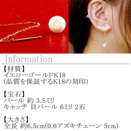 - 18金 ロングピアス ペア あこや真珠 パールキャッチ 150708500y SWAA146