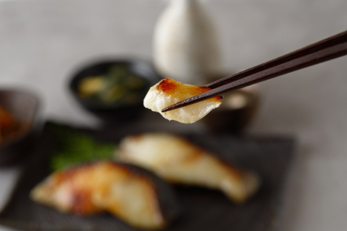<銀だら西京>厳選した一本釣りアラスカ産「銀だら」のジューシーな美味しさを、京都老舗の西京味噌ベースの西京ダレにじっくり漬込みました。