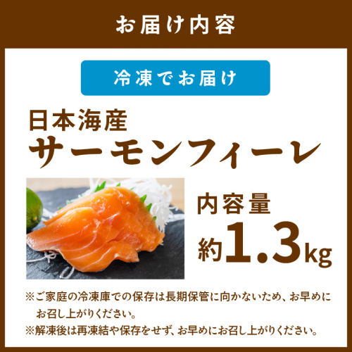 【数量限定100】絶品!お手軽!骨抜き!日本海産 サーモンフィーレ 約1.3kg