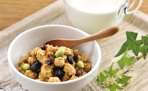 北海道・十勝産のドン加工大豆、煎り黒豆、フリーズドライの小豆と枝豆を混ぜ込み、
