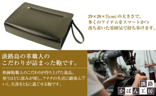 【ここがポイント】創業50年の実績と日本製の安心感!! オーダーメイドで培った技術を駆使した、淡路かばん工房の熟練の鞄職人の手による、少し大きめサイズのメンズ仕様ポーチ。今や百貨店や街の鞄専門店では入手が難くなってきた日本製のセカンドバッグです。