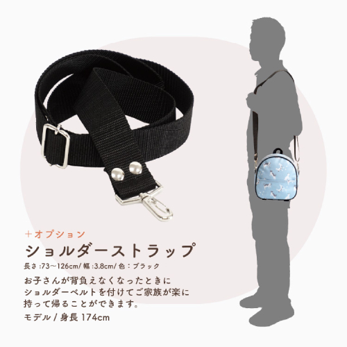 子どもが成長し背負えなくなった時などは、別売りのショルダーストラップを付けても使用することができます。