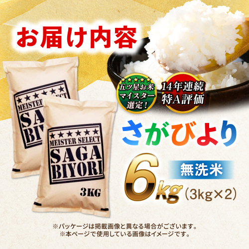 【令和7年産】特A獲得!さがびより 無洗米 6kg(3kg×2袋) 吉野ヶ里町/大塚米穀店 [FCW026]