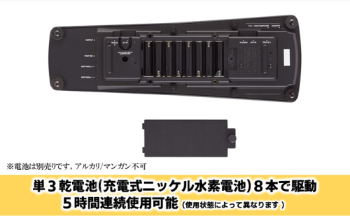 ●電源:AC アダプター(付属)、充電式ニッケル水素電池(単3形)×8 ※アルカリ乾電池、及びマンガン乾電池はご使用いただけません。
