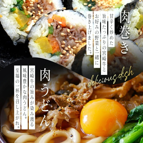宮崎牛のウデ・モモを中心に、赤身肉を切り落としにしました。 300gずつのパック詰めにしておりますので、炒め物・煮込み料理等いろいろなお料理をお楽しみ頂けます。